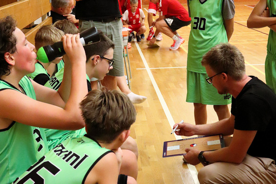 Neděle U14A se Zlínem – dnes jsme prohráli výrazným bodovým rozdílem. Zlín hrál vytaženou obranu do zdvojení a naši kluci jim bohužel darovali hodně lehkých míčů. Jinak byl ale zápas dnes pohlednější a kluci v určitých úsecích hry, kdy dokázali press překonat, hráli rychle, reagovali na situace, tak dokázali být Zlínu vyrovnanými soupeři. Bohužel jen po část utkání.